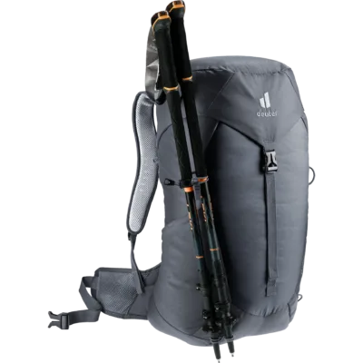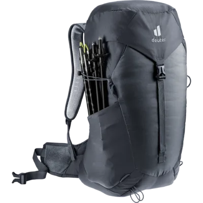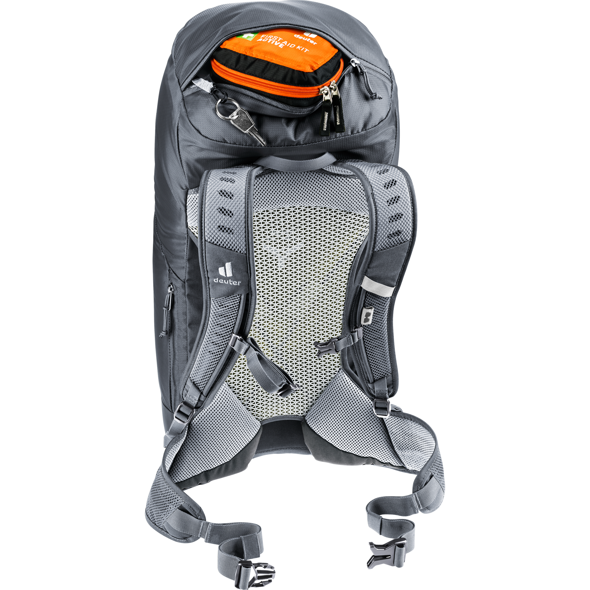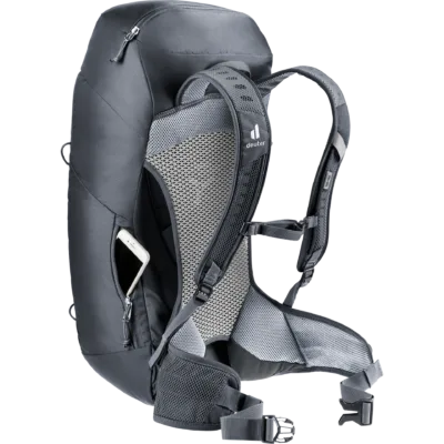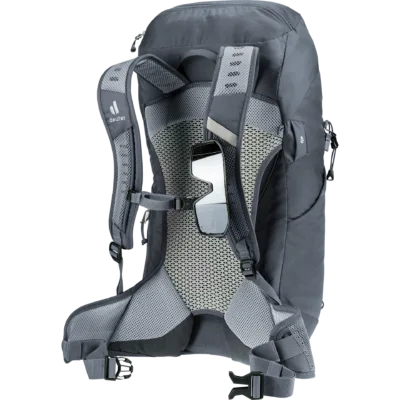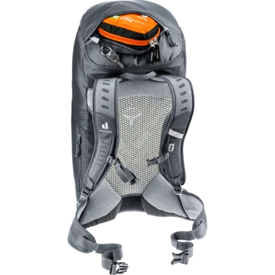 Esta práctica mochila de uso diario cuenta con el sistema dorsal ultraligero deuter Aircomfort con ventilación máxima y ofrece una excelente relación comodidad-peso. Tiene una sección principal espaciosa y un bolsillo exclusivo para el móvil, bolsillos laterales elásticos, compartimentos cubiertos y lazos de equipamiento para sujetar bastones y cualquier otro equipo que pueda ir fuera de la mochila. Está preparada para montar un soporte de malla para el casco y un sistema de hidratación (hasta 3 litros), e incluye una funda de lluvia extraíble.