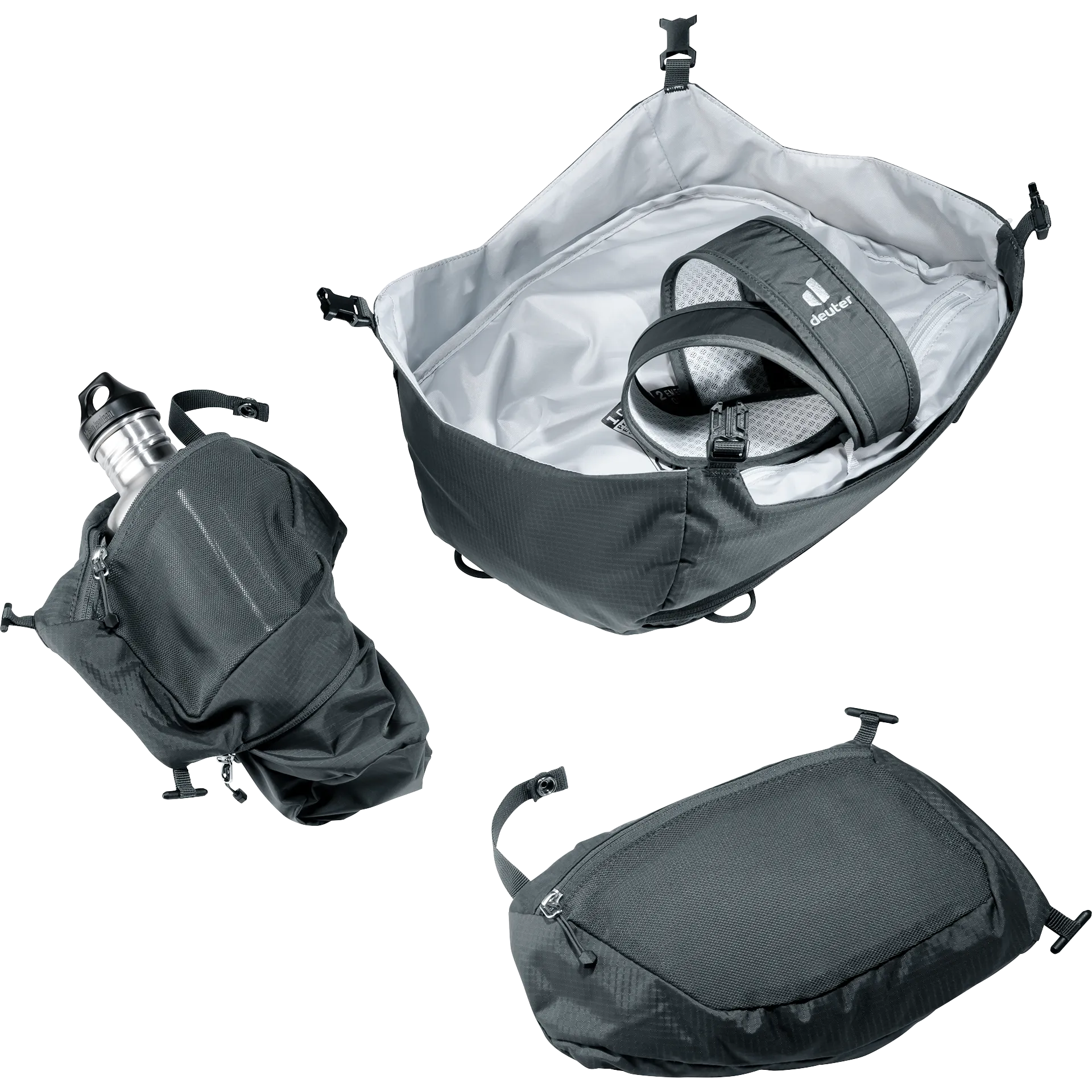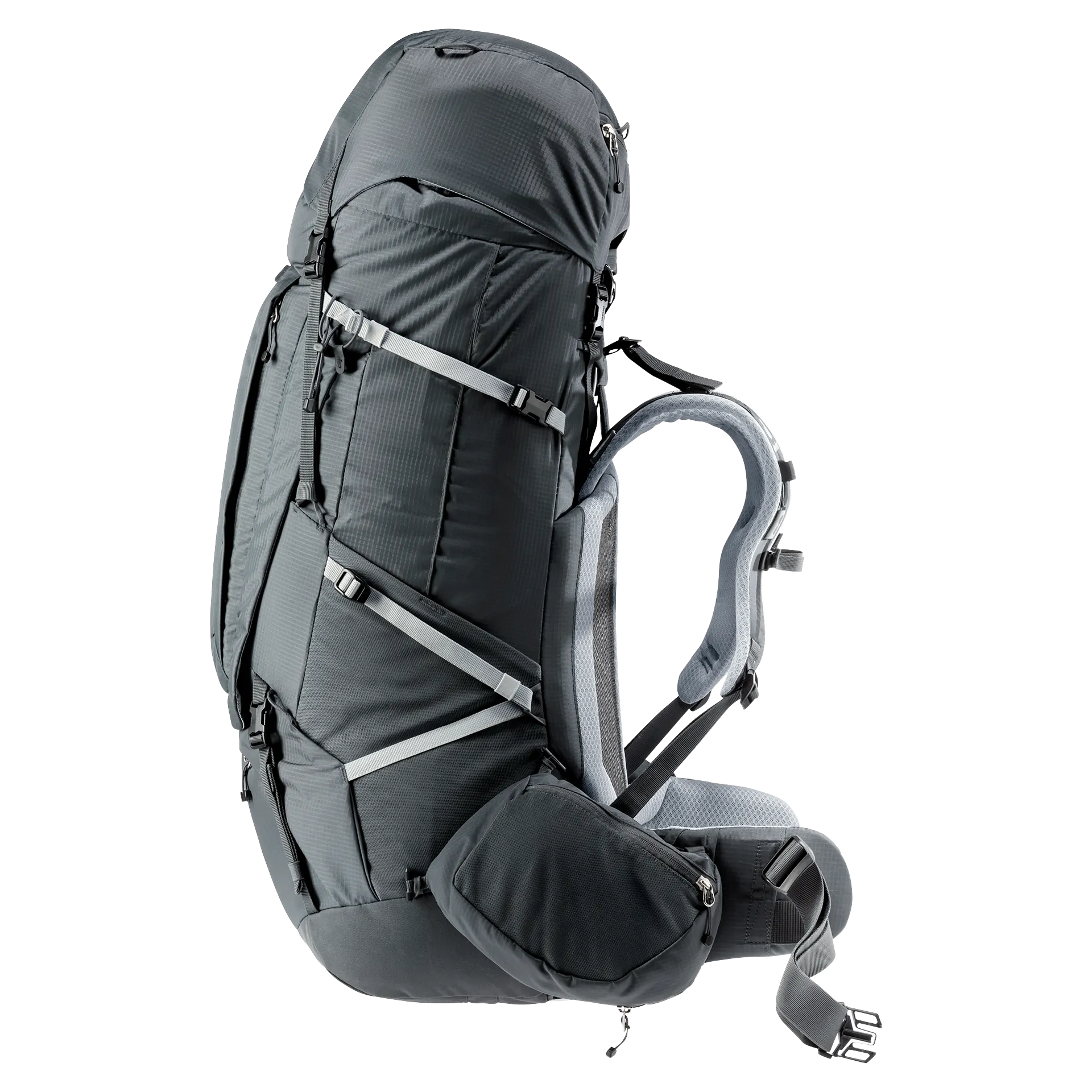 Muchos compartimentos interiores diferentes ofrecen una organización práctica del equipo. Los bolsillos exteriores ofrecen más volumen y organización para todo lo que hay que tener a mano. Incluso para postes de tiendas de campaña, entre otras cosas. Los amplios bolsillos desmontables de las aletas lumbares también proporcionan más espacio de almacenamiento; incluso para una botella de agua de 1,5 litros en un bolsillo adicional desplegable. El acceso rápido a través de la abertura frontal y el espacioso compartimento inferior facilitan su manejo. La tapa extraíble puede convertirse en una mochila de diario con hombreras en un abrir y cerrar de ojos.