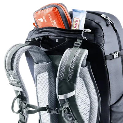 El ajuste compacto le otorga estabilidad y evita que la mochila se mueva en caso de movimientos bruscos. Al mismo tiempo, los canales de ventilación de las almohadillas garantizan que el aire circule libremente por más del 80 % de la espalda gracias a la menor superficie de contacto